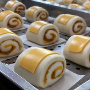 – Những chiếc bánh bao to, đầy đặn (không nhỏ xíu như bánh truyền thống ở HN đâu ạ). Nguyên liệu làm bánh toàn là các nguyên liệu cao cấp, nên khi cầm hộp bánh cảm nhận đầu tiên là mùi rất thơm từ bột gạo, từ phômai… Khi ăn thì đã cái miệng luôn ạ! Nhân bánh siêu ngon, lại đậm đà và nhiều đã luôn. Riêng cảm giác cắn một cái mà lớp phomai dẻo quánh kéo dài thành sợi lớn là phê lắm ấy. Tóm lại là bánh phải điểm 10+++
