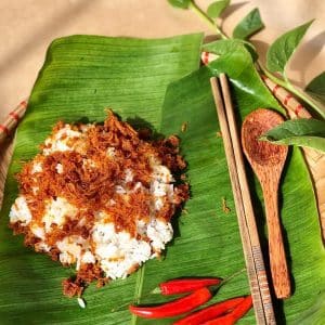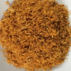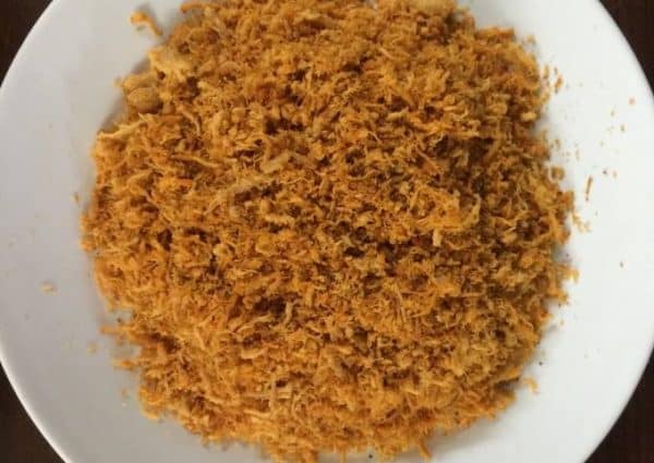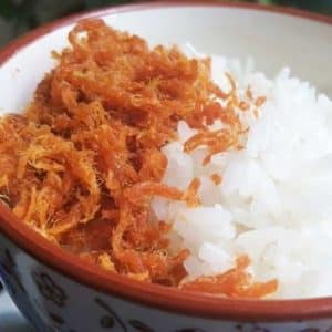 ? Món ruốc tôm Quảng Ninh này muốn ngọt chắc chắn phải có chút thịt lợn. Thịt lợn tuy chỉ có 1 lượng nhỏ nhưng cũng đủ để giúp ruốc bớt tanh hơn, các bé dễ ăn hơn.