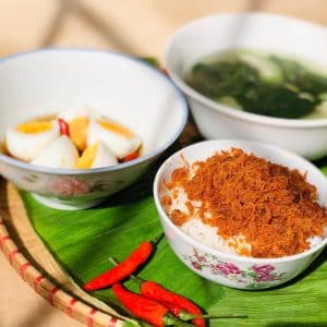 ? Ruốc tôm bên em chính là sự hòa quyện hoàn hảo của loài tôm ở vùng biển Hạ Long và thịt lợn sạch ( thịt lợn các chị cứ chọn thịt vai hoặc mông mềm là ruốc sẽ cực mềm ạ).