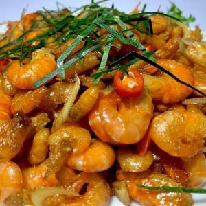 Tôm sông Đà rang lá chanh (rang 1 lửa)